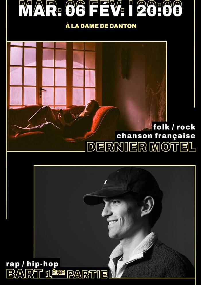 Tu veux savoir ce qu’ont pensé les spectateurs et la presse de cet événement : Dernier Motel + 1ère partie Bart - La Dame de Canton ? Découvre leurs avis éclairés et prépare-toi à vivre un moment d’exception à ton tour en réservant tes places !