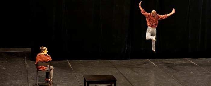 Deux interprètes déploient toute leur virtuosité corporelle à défendre fougueusement un vrai-faux spectacle.