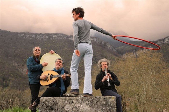 Sept ans après avoir joué à la citadelle d'Alep en Syrie aux cotes d'une dizaine de derviches tourneurs, Bab Assalam réinvente, en compagnie de Sylvain Julien, le mythe des derviches tourneurs avec un concert " tourne " où la transe soufie devient une poésie circassienne. Au coeur même du projet musical : la perpétuelle recherche de cette rencontre entre Orient et Occident, entre morceaux traditionnels existants réorchestres, composition et improvisation. Et un spécialiste du cerceau : Sylvain Julien, circassien à la fois jongleur, manipulateur d'objets plus ou moins improbables, danseur, conteur et magicien.