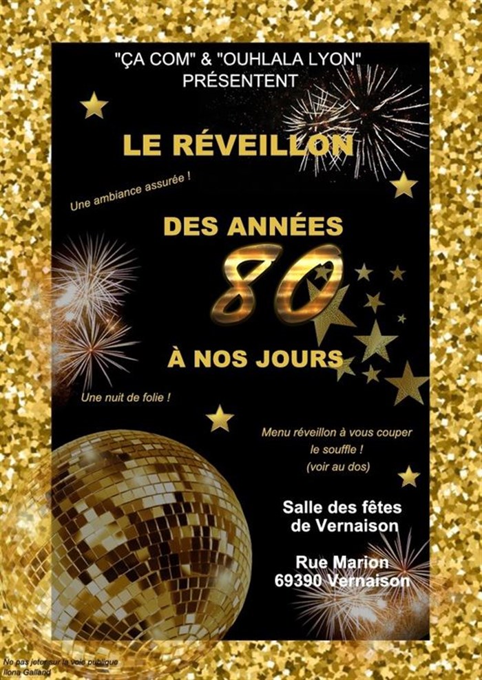 Réveillon du jour de l'an, à Vernaison, à 10 min de Lyon sur le thème des années 80 à aujourd'hui.