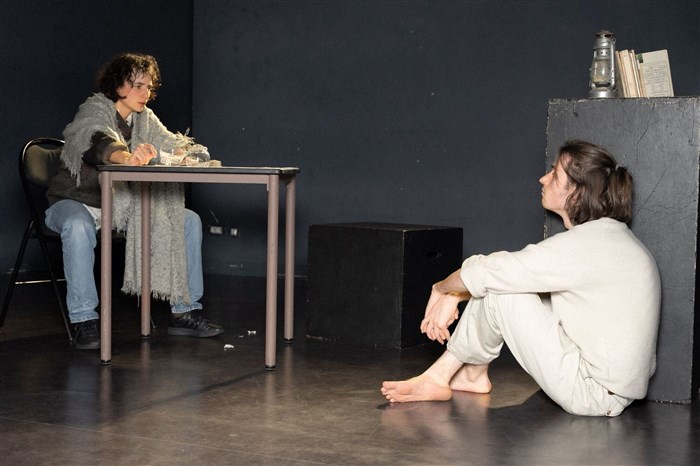 Ceci est la première création de la compagnie Canine : Des couteaux dans les poules, à partir du texte de David Harrower, traduit par Jérôme Hankins.