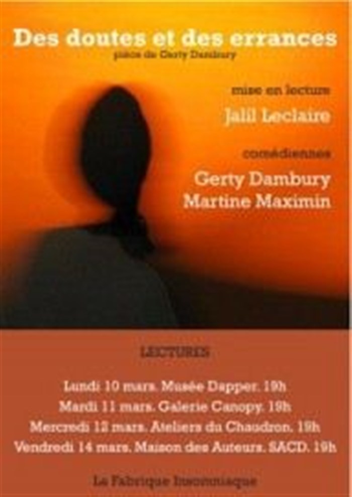 L’événement Des doutes et des errances de type Lecture / Poésie / Contes, organisé ici :