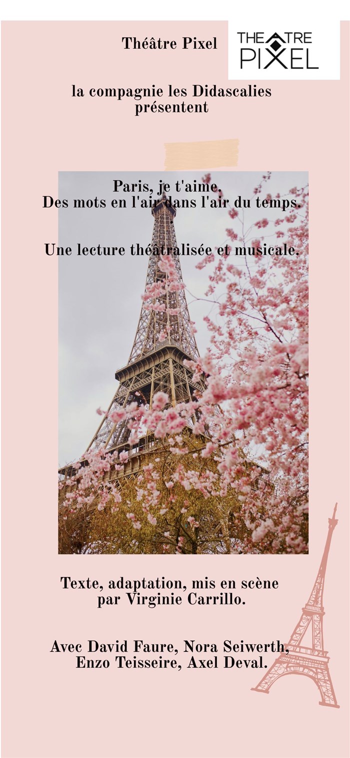Le public est invité à entrer dans un univers poétique à travers une lecture musicale théâtralisée à trois voix, hommage à cette belle ville : Paris.