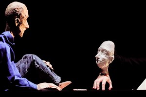 Un théâtre visuel où se confrontent présences humaines et objets marionnettiques.