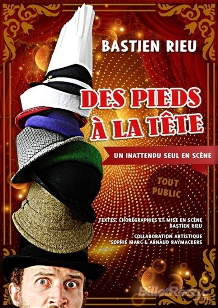 Seul en scène poético-burlesque, "Des pieds à la tête" vous invite dans un voyage hors du temps au travers de petites scénettes fantasques, parfois absurdes où le chapeau devient un prétexte à la création d'un personnage, lui donnant ainsi une vie, une âme.