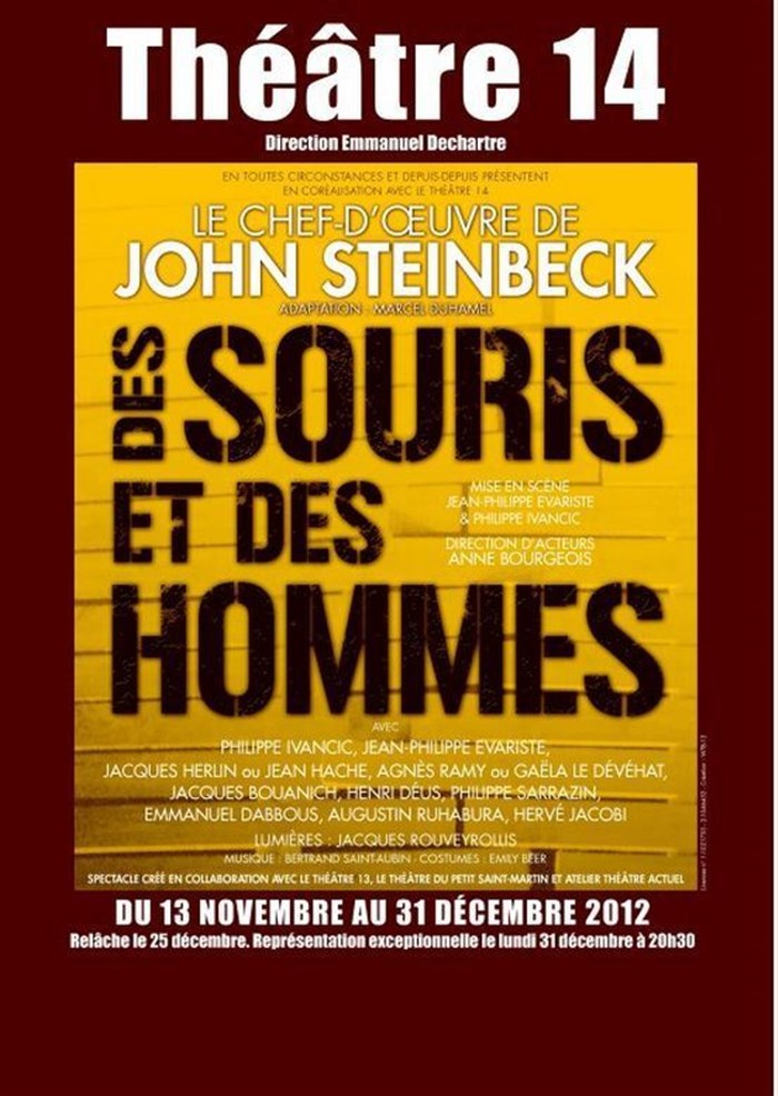 Si comme moi vous n'avez ni lu ni vu ce classique de Steinbeck, courrez voir cette troupe : les acteurs débordent d'énergie. Une nomination aux Molières bien méritée