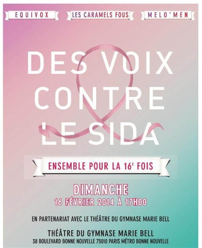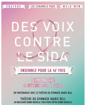 Ensemble pour la 16ème fois, le choeur Equivox, le choeur Mélo'Men et les Caramels Fous se retrouvent pour le rendez-vous "Des Voix Contre le Sida", afin de récolter des fonds au profit d'associations de lutte contre le sida et d'aide aux malades.