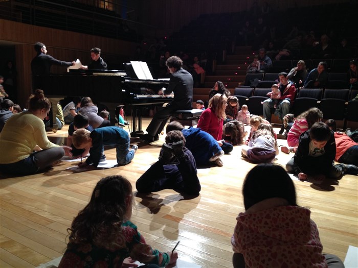 Dessine-moi une musique permet aux enfants d'être spectateur de la mise en dessin de l'oeuvre musicale de Francis Poulenc et ensuite de créer leur propre narration sur des pièces de Debussy jouées par Damien Luce.