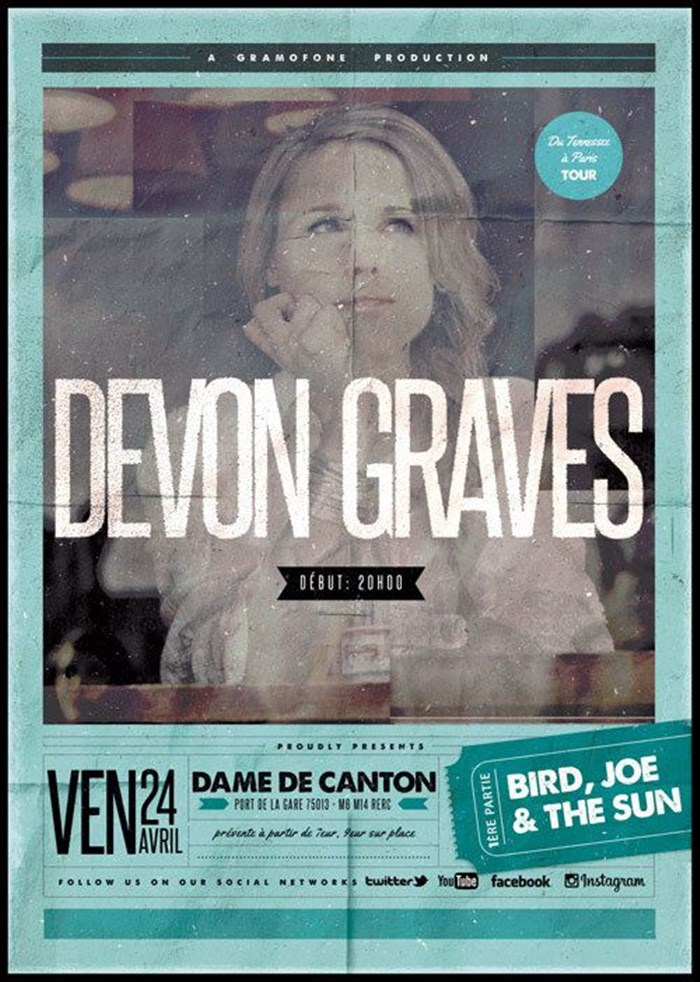 " Du Tennessee à Paris ", un premier album au nom évocateur pour cette jeune américaine originaire du Kentucky venue s'installer en France. Après trois albums sortis aux Etats unis, c'est à Paris que Devon Graves s'installe pour dévoiler son premier album au public français. On y devine les influences éclectiques des mélodies bluegrass, country, folk, et une touche de Jazz vivant.