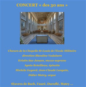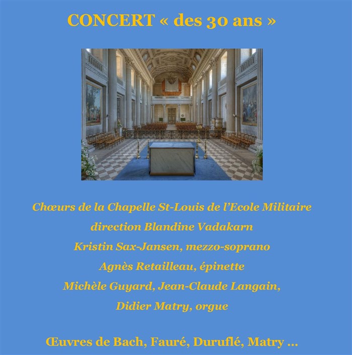 Avec les choeurs de la chapelle dirigés par Blandine Vadakarn, Kristin Sax-Jansen, mezzo soprano, Agnès Retailleau, épinette et Didier Matry, Michèle Guyard et Jean-Claude Langain à l'orgue. Œuvres de Duruflé, Matry, Bach, Tapray ...
