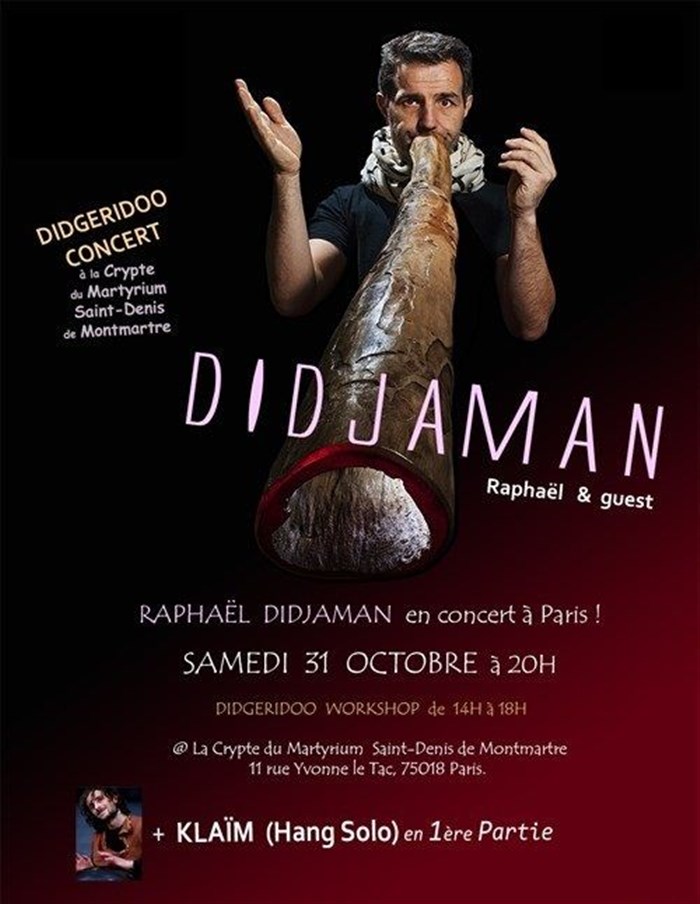 Raphaël Didjaman est le pionnier du didgeridoo en France. D'abord saxophoniste, a tout plaqué un jour pour partir en Australie. Sur ces terres originelles, il a découvert le didgeridoo. A l'écoute de rites aborigènes, il a senti que cet instrument serait au coeur de tous les changements que connaîtrait sa vie... C'était en 1995.