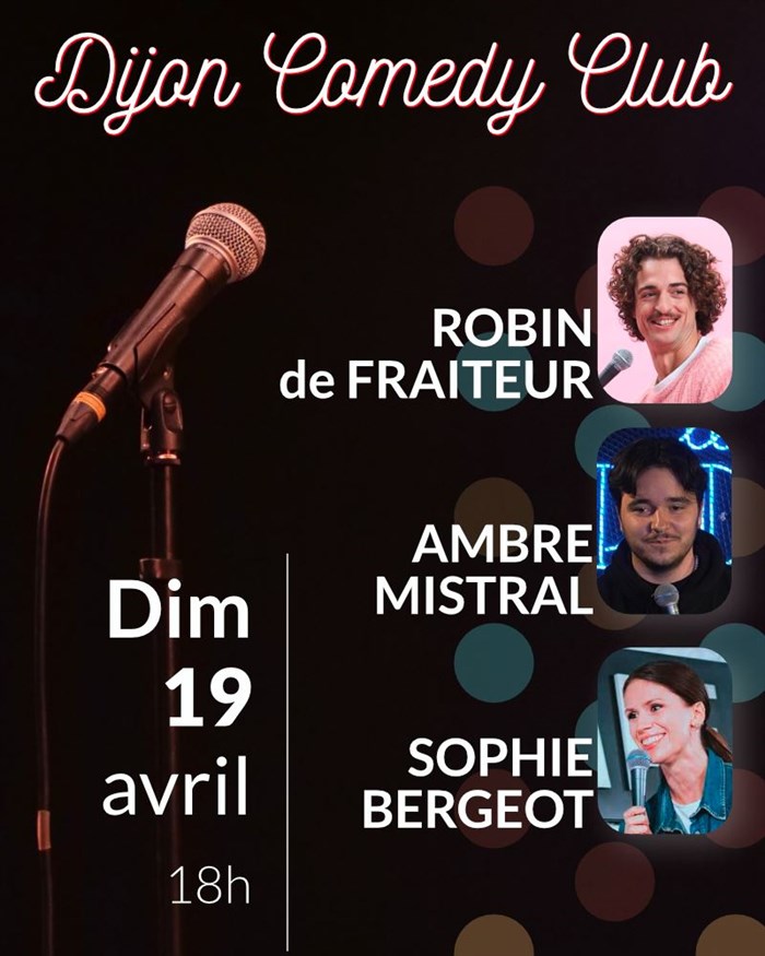 Découvre Dijon Comedy Club, qui fait partie de notre sélection d’événements de type Comedy clubs et qui se tient ici : Bistrot de la Scène -