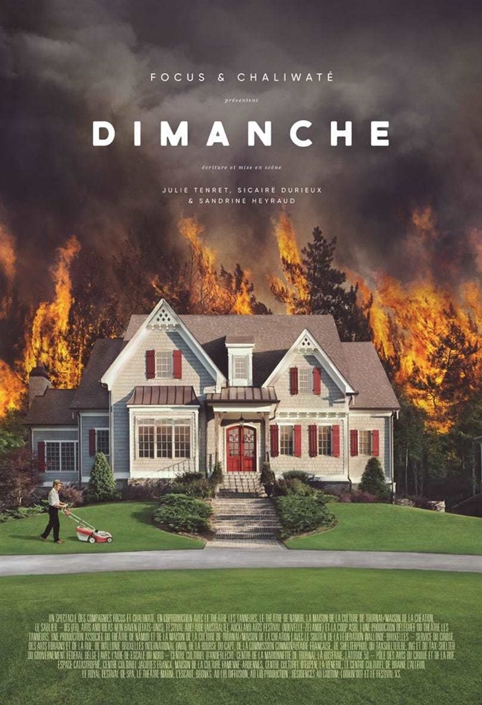 Peut-on (f)rire de tout, même de l'urgence climatique?? Les deux compagnies belges ont décidé que oui et elles y mettent les moyens : théâtre d'acteur, d'objet, du geste et de la marionnette, avec de la vidéo et quelques ventilateurs. Quand le monde est au bord de l'effondrement, quand les derniers grands reporters suivent les traces des derniers grands animaux, une famille tranquille use du génie de l'absurde pour passer un dimanche à domicile, elle empile torchons vinyles, au-delà des portes closes, ouragan, canicule et tsunami...
