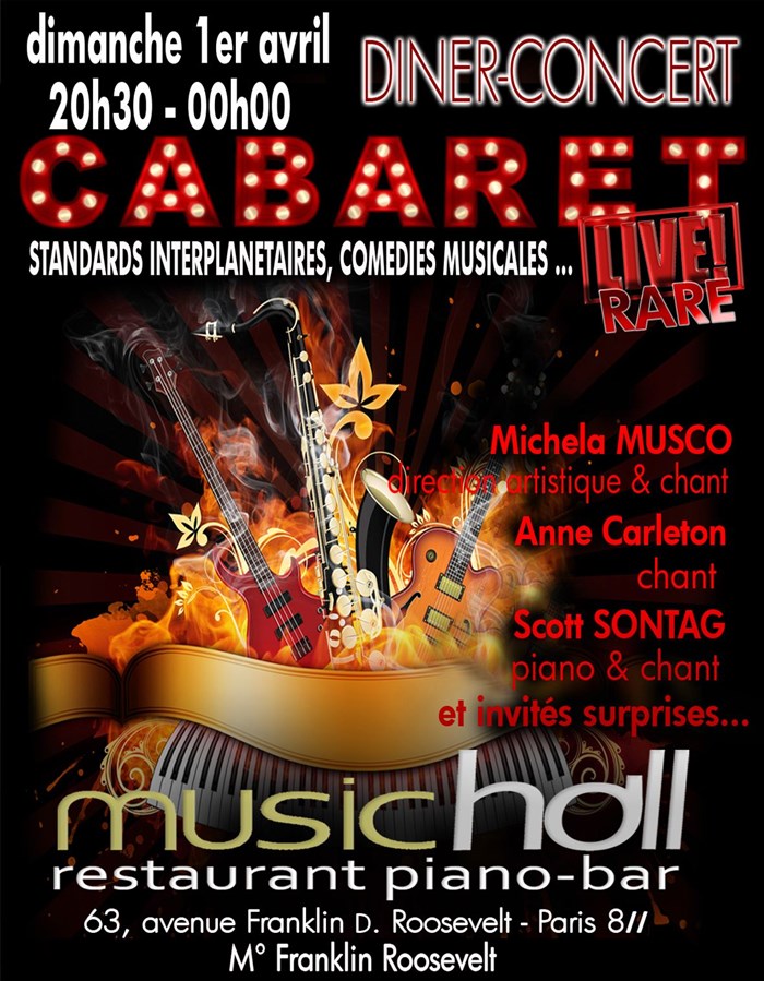 Le restaurant Music Hall se transforme en cabaret avec 3 artistes : une soprano, une chanteuse de jazz et un chanteur américain et de nombreuses surprises musicales...