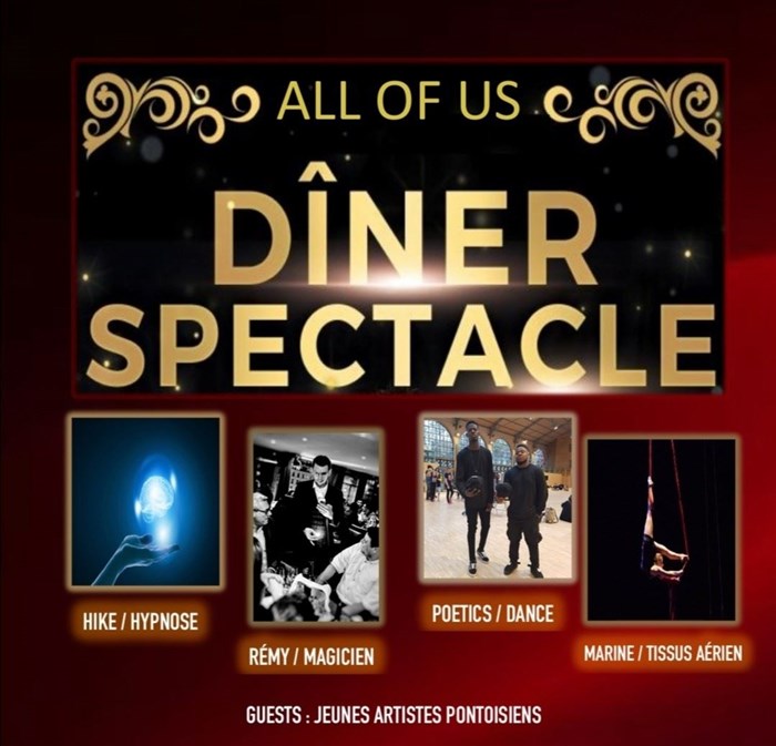 Fort de son succès lors de la 1ère édition, nous sommes de retour pour un nouveau show. Nous vous invitons à venir participer à cette soirée où serons mis à l'honneur les jeunes artistes Pontoisiens ainsi que les bénévoles (jeunes et moins jeunes) qui prendront soin de vous lors de ce dîner-spectacle. Serons aussi parmi nous des artistes plus chevronnés qui vous présenterons leurs numéros et leurs shows de magie, danse, tissus aérien et mentaliste !