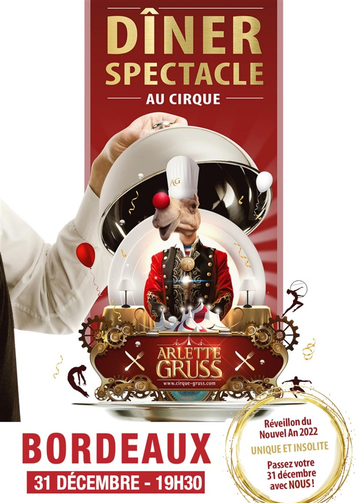 Dîner spectacle de la Saint Sylvestre au Chapiteau Arlette Gruss de Bordeaux.