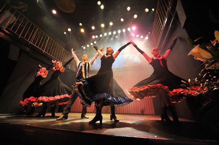 Dîner-spectacle dans la grande tradition du Music-hall, French cancan, Plumes, Paillettes, sur le thème d'un grand tour du monde à travers le temps.