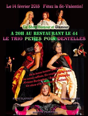 Ces trois artistes se réunissent pour vous proposer un show plein d'humour, de folies et de cancaneries... alors n'hésitez pas et réservez pour un soir qui vous enchantera. Que vous soyez en couple ou non, la soirée est conçue pour le plus grand plaisir de tous ....alors ne cherchez plus vous avez trouvé !