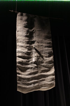 La magie du théâtre opère dans le dialogue entre les mots des poètes, le langage corporel des interprètes, la musique et la manipulation d'objets : bambous, papier de riz, ruban de soie.