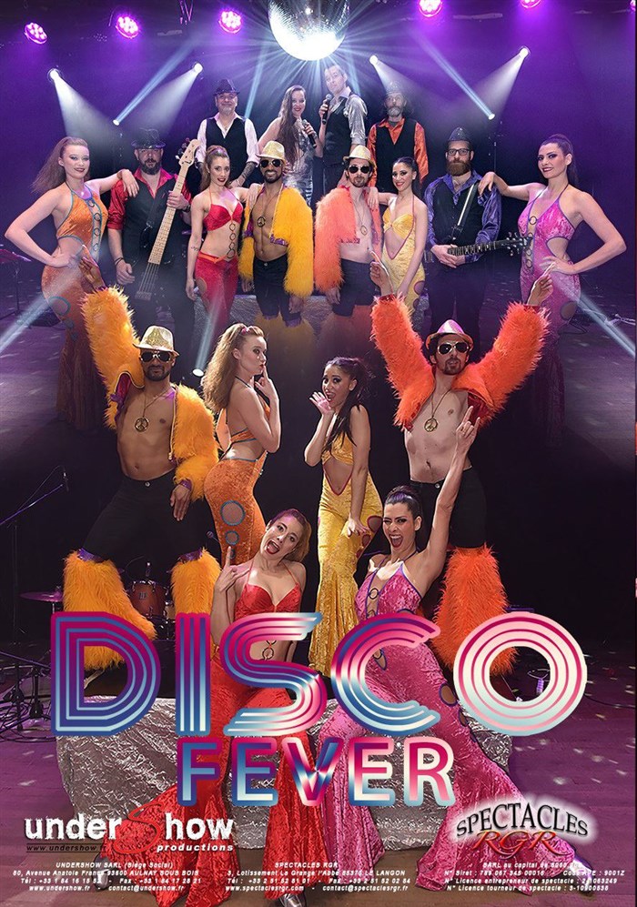 Alors, avec ou sans vos talons compensés, venez tous faire la fête sous la boule à facettes et vibrer avec nous aux sons du Disco en Live, chanté et dansé par 16 artistes venus immortaliser les chansons de vos stars des strass venues des deux côtés de l'Atlantique, célébrées et sublimées sur scène pour raviver en vous la légendaire Fièvre du Disco ! 2 heures de show tout en rythmes, dans un tourbillon de chansons et de medleys endiablés, vous chanterez les refrains qui vous ont tant fait bouger... !