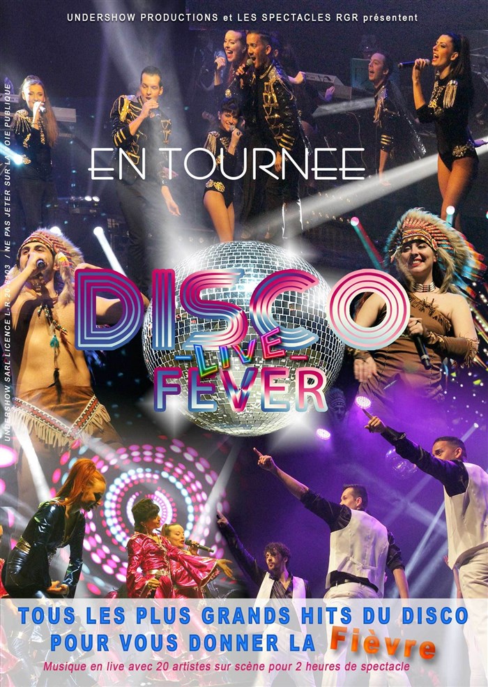Alors, avec ou sans vos talons compensés, venez tous faire la fête sous la boule à facettes et vibrer avec nous aux sons du Disco en Live, chanté et dansé par 16 artistes venus immortaliser les chansons de vos stars des strass venues des deux côtés de l'Atlantique, célébrées et sublimées sur scène pour raviver en vous la légendaire Fièvre du Disco ! 2 heures de show tout en rythmes, dans un tourbillon de chansons et de medleys endiablés, vous chanterez les refrains qui vous ont tant fait bouger... !
