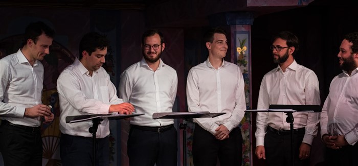 Discorde Vocale, c'est six individus binaires de genre masculin partagés entre le chant et l'apéro.