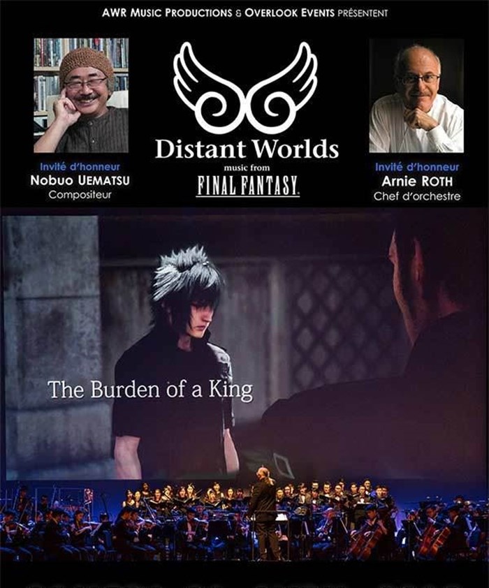Vivez les thèmes immortels de la saga légendaire, interprétés par plus de 100 musiciens sous la direction d'Arnie Roth, artiste salué d'un Grammy Award. En présence de Nobuo Uematsu, compositeur historique de FINAL FANTASY, retrouvez dans un programme exceptionnel pour orchestre et choeur complet les plus grandes musiques de la saga, illustrées par les vidéos de Square Enix présentées exclusivement pour Distant Worlds.