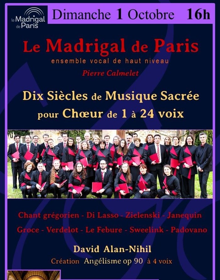 L’événement Dix Siècles de Musique Sacrée pour Choeur de 1 à 24 voix de type Musique classique, organisé ici :