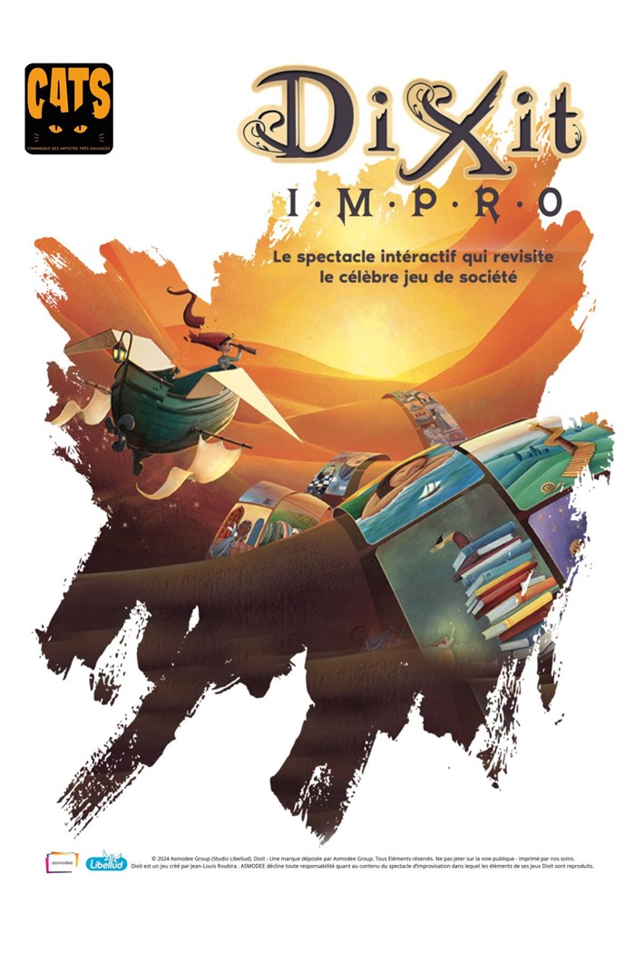 Les carte du jeu de société DIXIT prennent vie ! Le jeu se métamorphose en un spectacle d'impro drôle, poétique et interactif pour toute la famille.