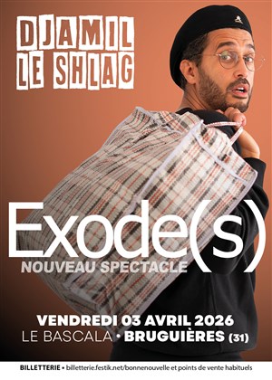 Découvre Djamil le Shlag dans Exode(s), qui fait partie de notre sélection d’événements de type Mecs drôles et qui se tient ici : Le Bascala -