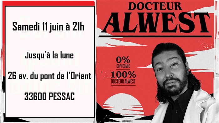 A l'heure ou de nombreux humoristes ultra médiatisés se font prendre par la chaîne YouTube Copycomic pour vol de vannes dans leurs spectacles, le Docteur Alwest est l'un des rares humoristes qui écrit seul ses textes sans avoir recours à ce genre de tromperie envers le public.