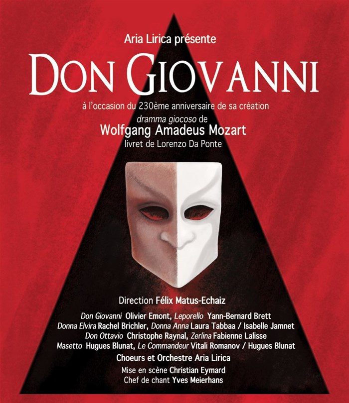 Aria Lirica présente Don Giovanni, Dramma giocoso de W-A Mozart, Livret de L. Da Ponte. L'Orchestre et choeurs sous la direction de Felix Matus-Echaiz