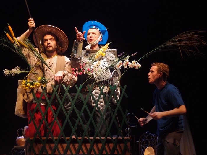 A ses côtés, Sancho Panza, paysan naïf, observateur des folies de son maître. Hymne à la fantaisie et à la joie, à la liberté, à la vie, au jeu et au rêve, le spectacle nous plonge à la source des délires de ces personnages vieux de quatre siècles.