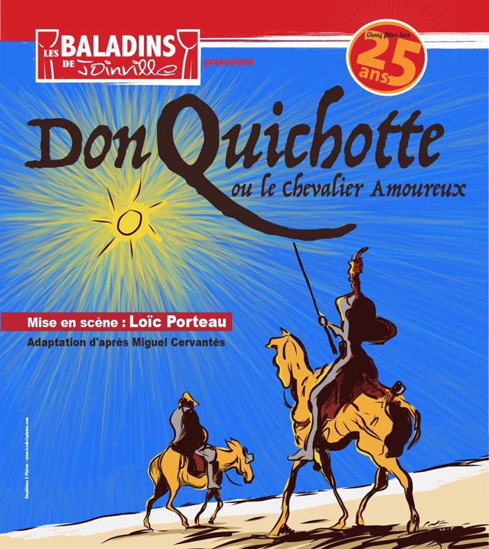 A travers cette fable familiale,poétique et loufoque, aux allures de folle épopée, vous découvrirez les aventures rocambolesques de ce preux chevalier accompagné de son non moins célèbre écuyer, Sancho Pança, paysan naïf, observateur des folies de son maître.