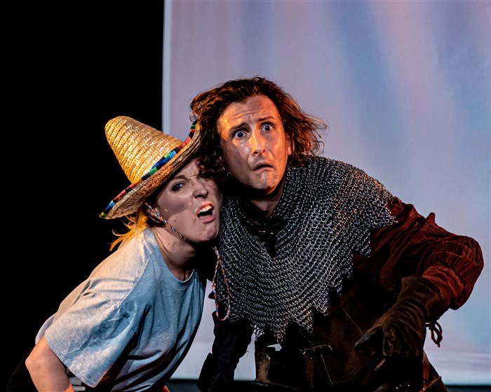 Sur scène, deux comédiens-escrimeurs et une musicienne nous entraînent dans les aventures aussi folles qu'émouvantes de Don Quichotte de la Mancha.