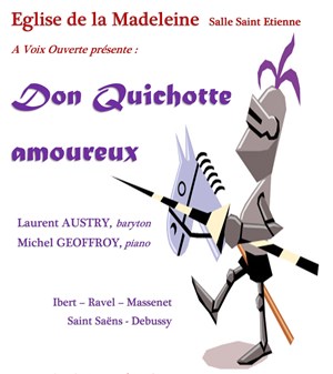 Don Quichotte est l'éternel amoureux de Dulcinée, ces amours ont inspiré Maurice Ravel, Jacques Ibert, Jules Massenet et d'autres compositeurs français que le baryton Laurent Austry et le pianiste Michel Geoffroy interprèteront.