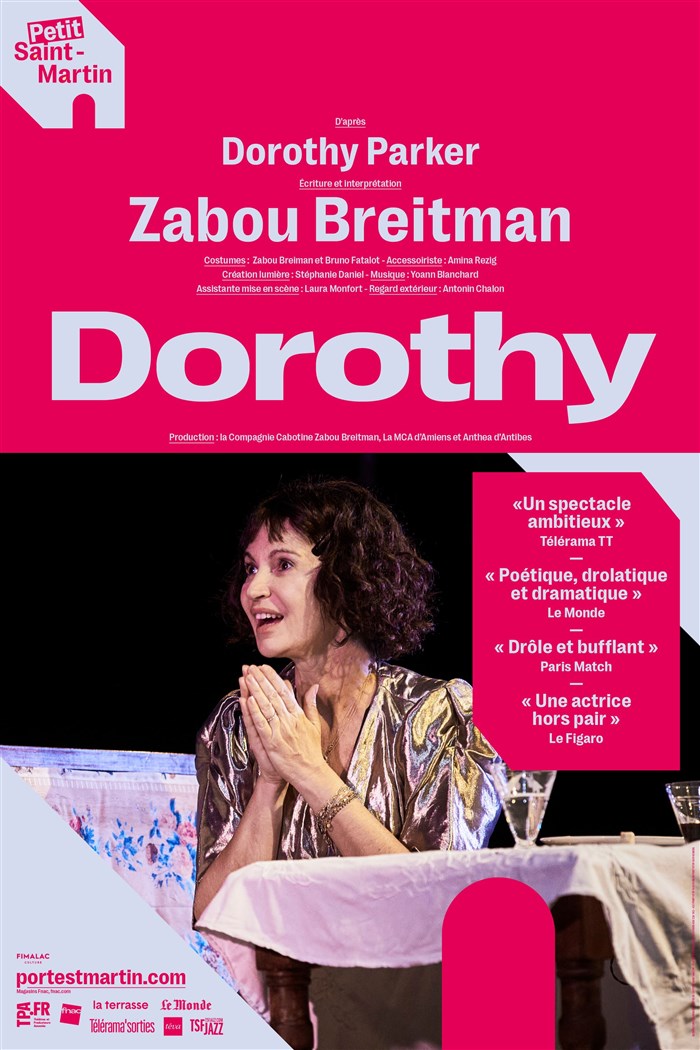 à partager à la découverte de cette Dorothy Parker avec tout l'humour et la sensibilté si présente sur scène de la belle Zabou . Elle nous accompagne à pénétrer et partager la vie si originale de cette personnalité , merci une très belle soirée