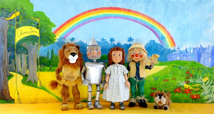 Spectacle de marionnettes à fils. Emportés par une tempête, Dorothy et son chien Toto atterrissent dans un pays magique.