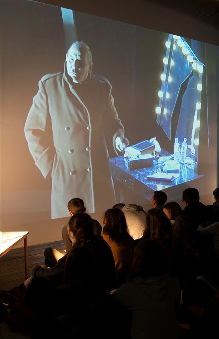 En mettant à son service toutes les armes de la pratique théâtrale, il tente de rencontrer l'homme au delà du Führer, de dialoguer avec lui.
