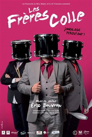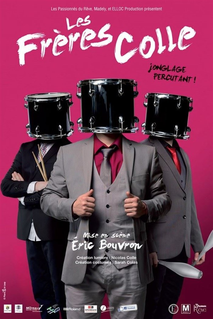 Entre rythmes effrénés et poésie, les Frères Colle mélangent allègrement les disciplines. Clément donne le temps, Cyril arrive à temps, Stéphane, lui, est à contretemps. Tout est source de percussions, mais les prédispositions artistiques du trio ne s'arrêtent pas là : cornemuse, flûte et guitare entrent dans la danse et les objets voltigent, aussi bien les quilles que les parapluies. Avec ce trio décapant et virtuose tout est talent, fantaisie et fougue. Des numéros époustouflants, un l'humour décalé ! Inclassable !