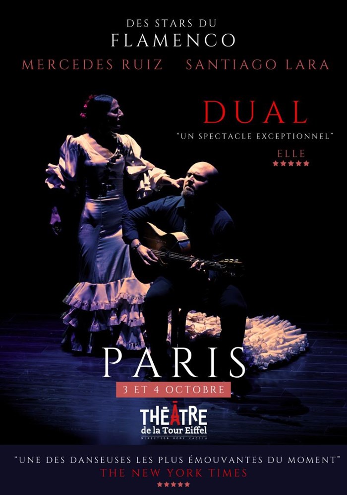 Mercedes Ruiz (chorégraphie et danse) et Santiago Lara (guitare flamenca et composition), unissent leurs talents exceptionnels et leur vision commune du flamenco dans "Dual", où l'évolution de la tradition devient un chemin partagé.