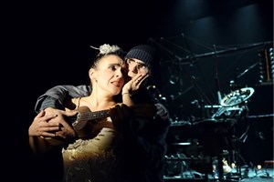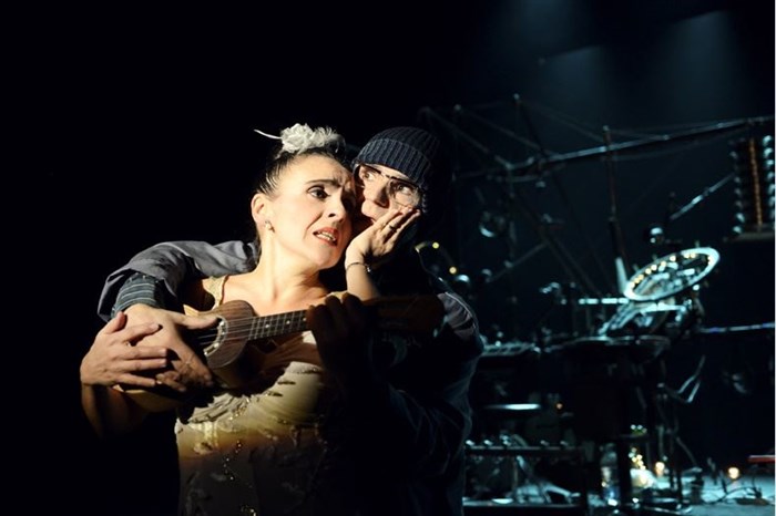 Elle est pétillante et naïve, la chanteuse. C'est une fonceuse, elle a le music-hall dans le sang et la joie de la scène en partage. Elle a quelque chose à raconter aux spectateurs... mais il est là, l'hommeorchestre, dans sa cage à musique, il est étrange, il joue de tout...