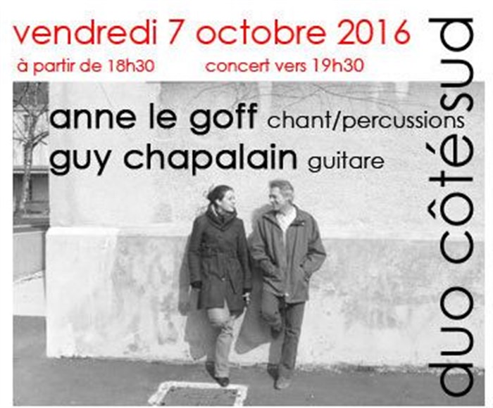 Formé en 2009, le Duo Côté Sud vous emmène en voyage. En Argentine d'abord avec ses danses traditionnelles (chacarera trunca, triunfo, tango) et les mélodies de Mercedes Sosa, en Amérique du Nord ensuite avec des standards de la chanson. Embarquez avec Noa pour une escale en Israël, puis rejoignez le Portugal et ses fados, avant un voyage dans le temps avec Schubert. Sans oublier la France avec Higelin ou Nougaro... La guitare, souvent virtuose, sait se faire sobre pour sublimer la voix, tantôt charmeuse, tantôt nerveuse. Bienvenue à bord !