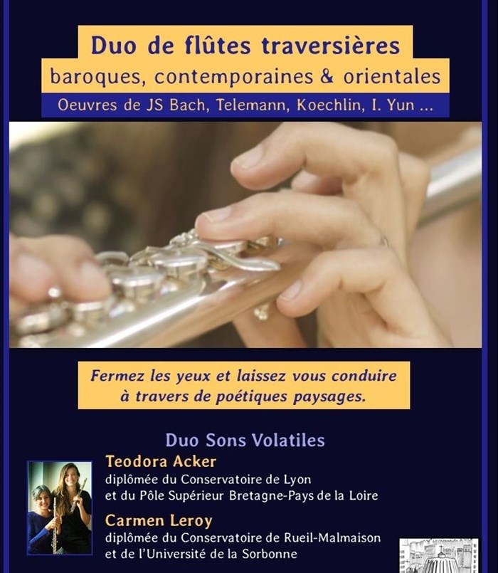 L’événement Duo de flûtes traversières : Baroques, contemporaines et orientales de type Musique classique, organisé ici :