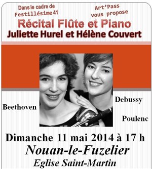 La flûtiste Juliette Hurel et la pianiste Hélène Couvert se produiront dans un concert où alterneront des oeuvres de Beethoven, Debussy et Poulenc.