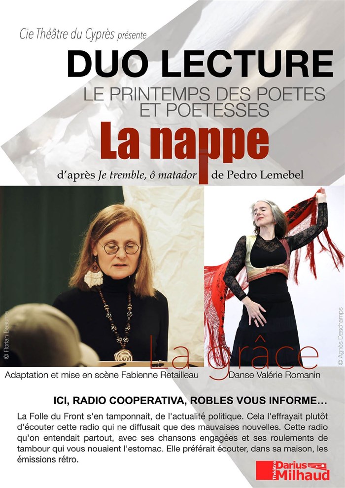 Duo Lecture : La nappe - Printemps des Poètes et poétesses, toutes les séances