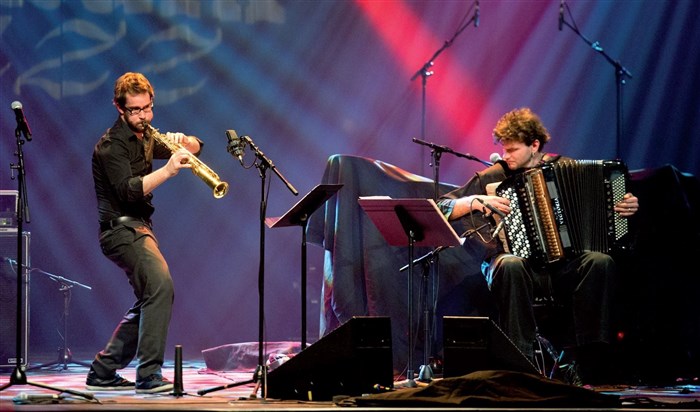 Mariage unique de l'accordéon de Vincent Peirani et du saxophone d'Emile Parisien sur la scène Barbara (Iris).