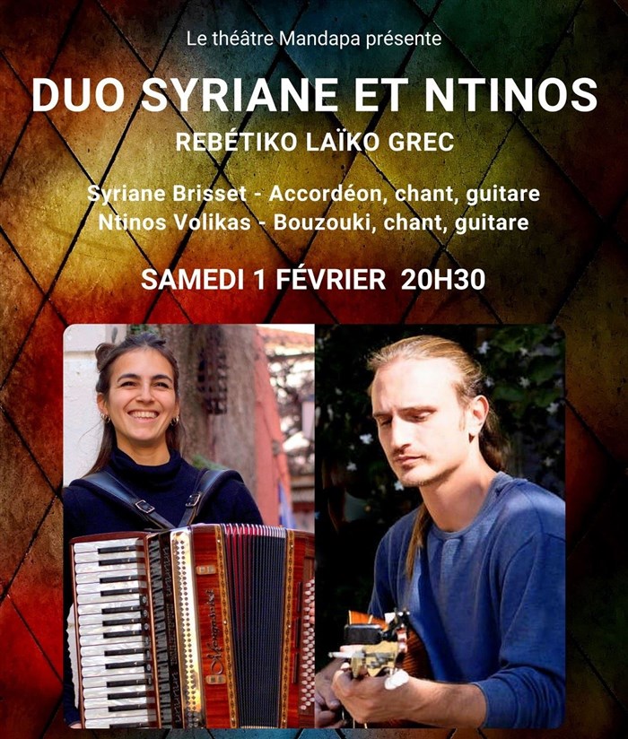 Tu veux savoir ce qu’ont pensé les spectateurs et la presse de cet événement : Duo Syriane et Ntinos - Rebétiko laïko grec - Centre Mandapa ? Découvre leurs avis éclairés et prépare-toi à vivre un moment d’exception à ton tour en réservant tes places !