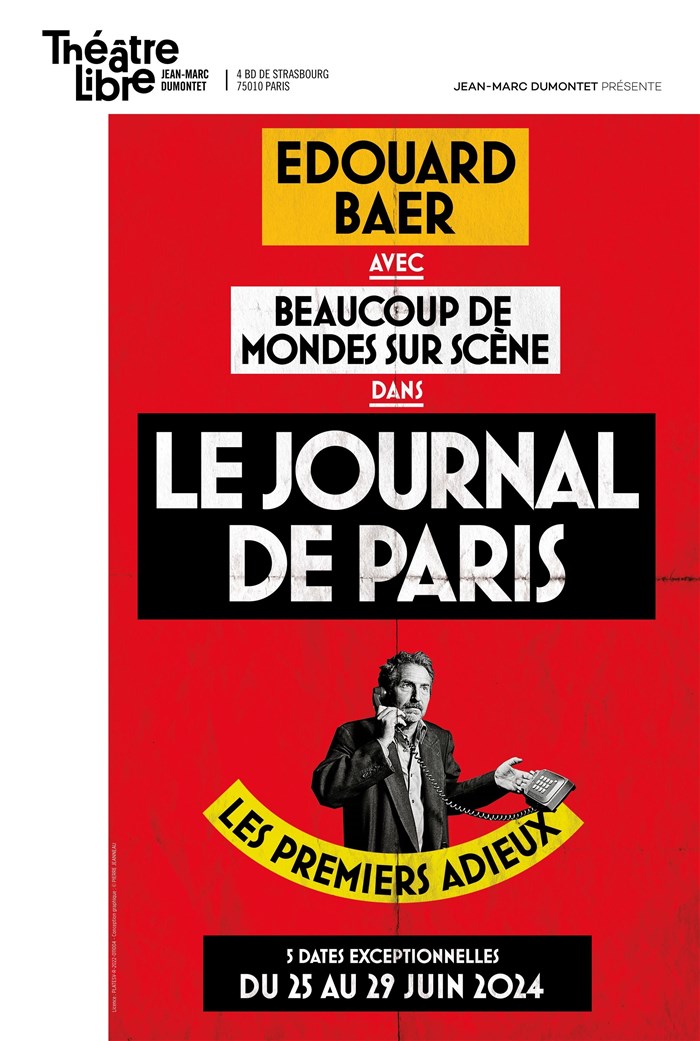 Tu veux savoir ce qu’ont pensé les spectateurs et la presse de cet événement : Edouard Baer avec beaucoup de mondes sur scène dans Le Journal de Paris - Théâtre Libre ? Découvre leurs avis éclairés et prépare-toi à vivre un moment d’exception à ton tour en réservant tes places !