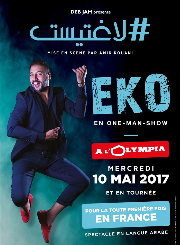 EKO débarque désormais dans les plus grandes villes de France et sera le premier humoriste arabophone à jouer son spectacle sur la mythique scène de l'Olympia à Paris.